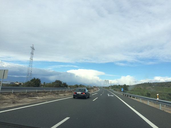 从格拉纳达上高速已是是下午五点,这一段两百多公里的路程,山路多弯且弯度较大,进出高速路的出入口非常多,车开起来比较困难,路程过半已是夜幕降临。更要命的是离住宿地还有二十多公里的时候仪表盘上的胎压指示灯骤然亮起,这时已下高速公路,赶紧在路边找地方停车检查,幸好轮胎都不太瘪,忐忑不安把车开到了住宿地。