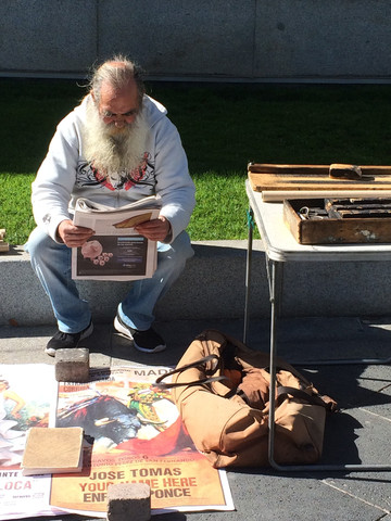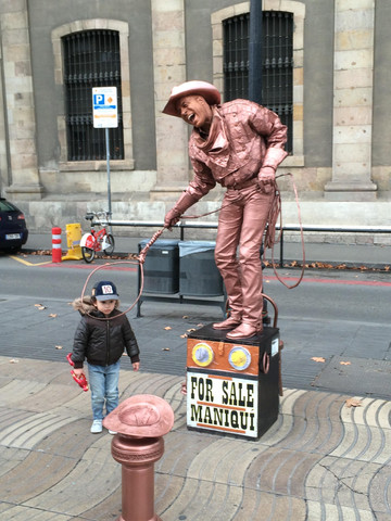 到托莱多是我两夫妇独自去,从马德里开车到托莱多六十多公里路程一个小时就到达,导航仪设置的终点坐标是大教堂。这儿的道路有点窄,有些路段车头雷达左右都显示宽度不够,行人要侧身靠墙车辆才能小心通过,去时又是上坡,幸亏是自动挡,如果手动挡一不小心熄火就麻烦了。车是非常准确地开到了教堂外面,用手机翻译问警察这里可否停车,回答是不可以,再问停车场在哪里?警察的手势是往下、左拐,再往下、再拐......就可以找到了,不太明白但是大概位置知道了,是在来的路上我们路过的一个停车场,又开始在狭窄的街道中穿行。