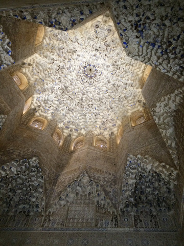 阿拉伯摩尔人于八世纪初年占领格拉纳达,在这片土地上建立过一个繁华的伊斯兰王国,十五世纪末,摩尔人无法抵抗天主教的反攻,格拉纳达最终被西班牙王国占领。特殊的历史造就了今天的格拉纳达,人们在这里能看到摩尔人修建的宫殿,也能看到天主教建筑的遗迹。这是一座融合了穆斯林、犹太教和天主教风格的城市。