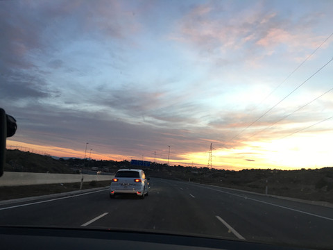 在欧洲高速路上开车大家都不占用超车道,开起来比较轻松,加之车辆又少,基本能保证120km的时速,扣除服务区停留,不到六个小时就跑完六百多公里路程,在暮色中到达巴塞罗那。
