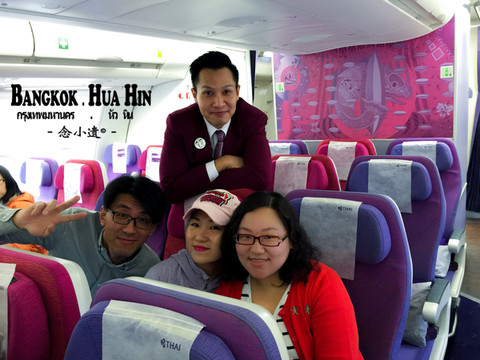 第一天的相遇,泰航上的犯二合影,泰航空少的抢镜头成为一乐~(*^__^*) 嘻嘻……