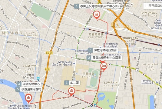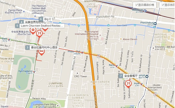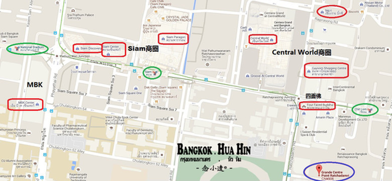 紫色为本次曼谷的酒店 - Grande Centre Point Ratchadamri Bangkok