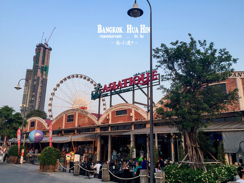 在此购买手工艺品、纪念品,到酒吧喝杯鲜酿啤酒,观看泰国传统剧目表演,或者只是沿着河滨散步。这里还有一座很漂亮的摩天轮,在夜晚绽放熠熠光彩,可乘坐俯瞰曼谷美丽夜景。
