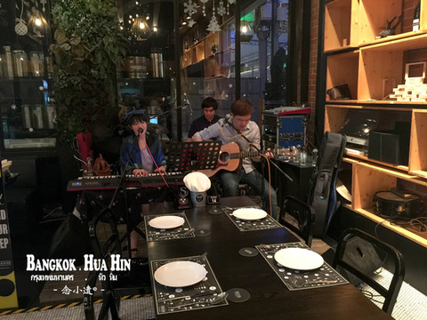 夜幕悄悄降临,华灯初上,各式表演也开始了,餐厅内地现场伴唱