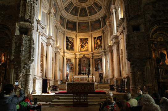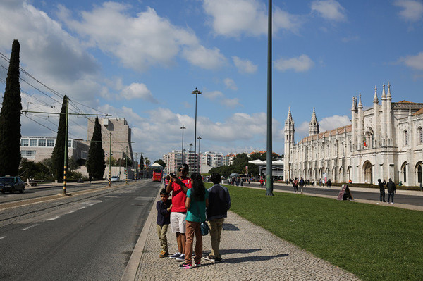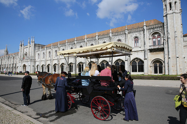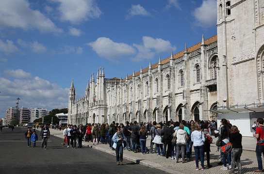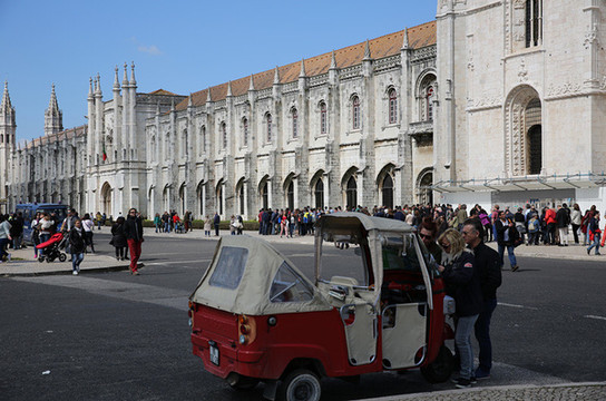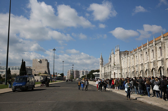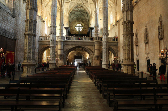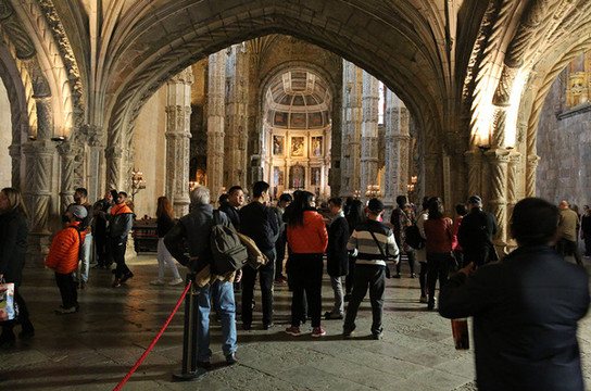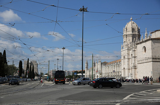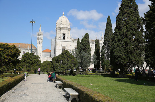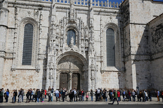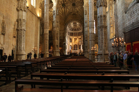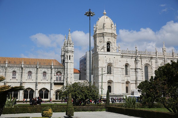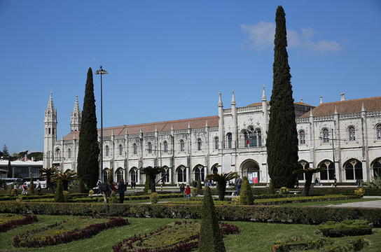 随后来到圣杰罗米诺大教堂及修道院,是当时的国王曼努埃尔一世为了纪念达迦马1501年从印度远航归来这一历史性的事件而下令建造的,它始建1502年直到16世纪末才建成。这是花了60年时间建筑的灰白砂岩、三层拱顶的宏伟的歌德式建筑,该寺院是里斯本重大灾难中幸存的少数重要建筑之一,著名的葡萄牙航海家达珈马就安葬于此。