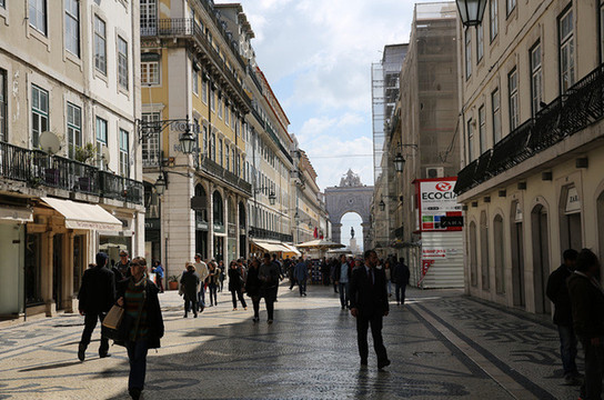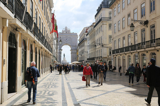 漫步车水马龙的里斯本贸易广场,亲身体验在异国商业区逛街的乐趣。广场中间是约瑟一世的骑像(可惜在维修),雕像后面是凯旋门。