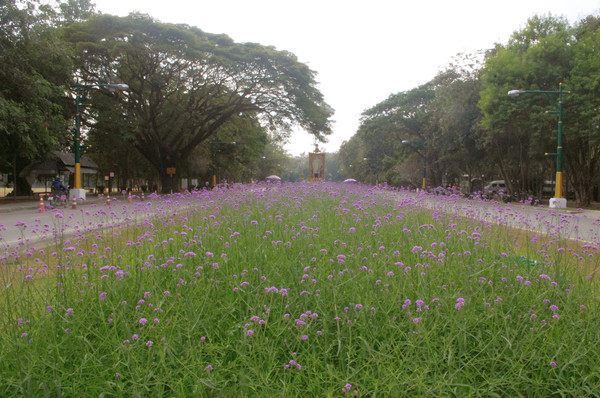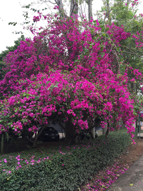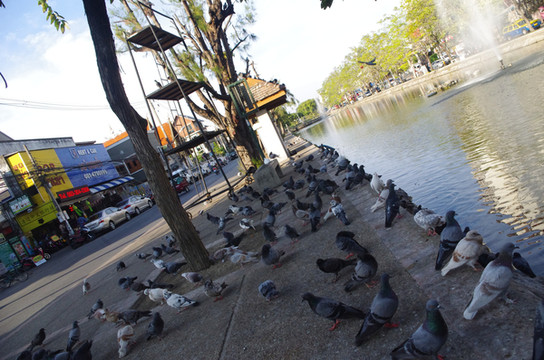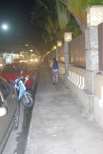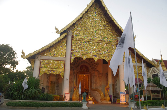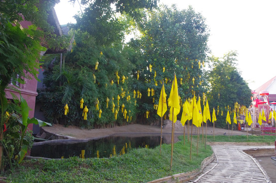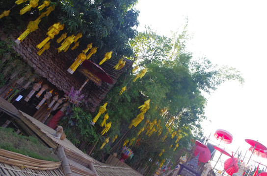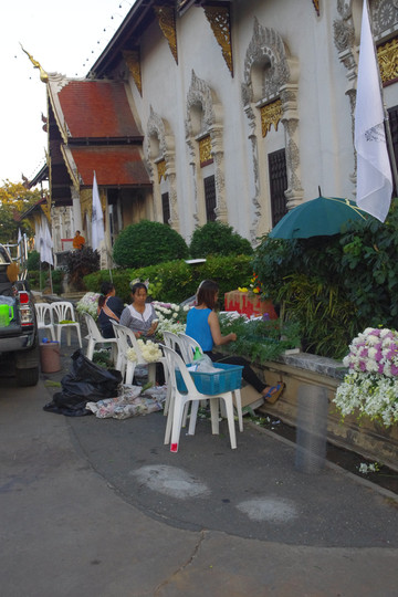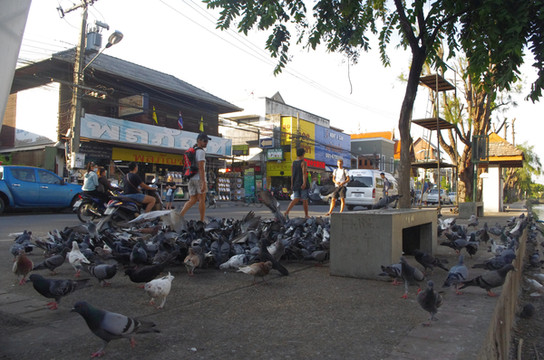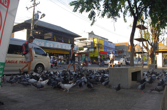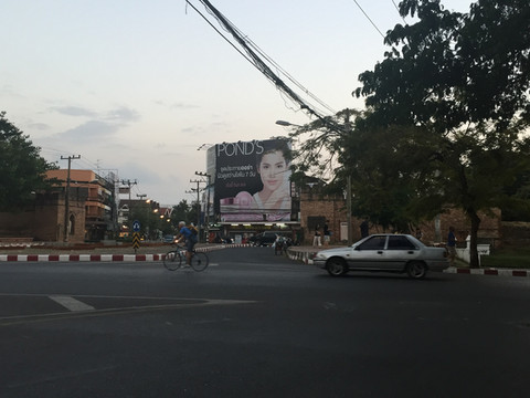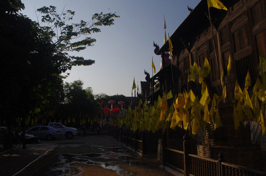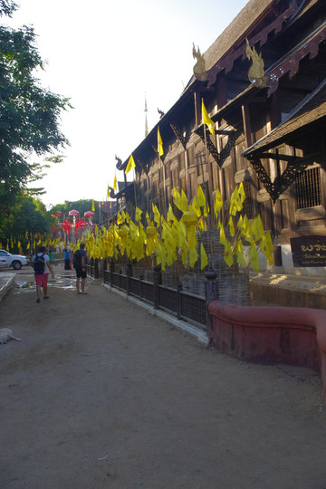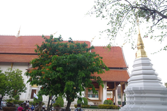 我很喜欢清迈的街道,不是很宽,楼房不高,除了摩托车飞快,其他都很好。清迈是五彩斑斓的,寺庙可以很金灿灿,和白色的墙体形成鲜明对比,花总是开得很张扬,我喜欢他们的房子,一栋一栋的,带着有点小景的花园,门口再按一个漂亮的信箱。