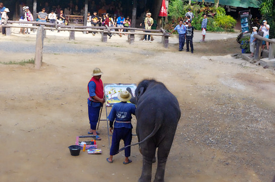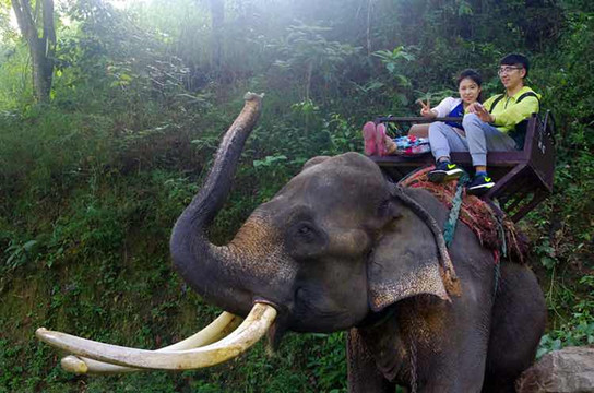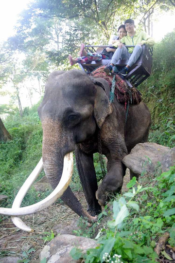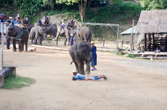 我俩觉得骑大象太残忍了不忍心,就骑了一小圈,拍拍照片就下来喂香蕉去了。