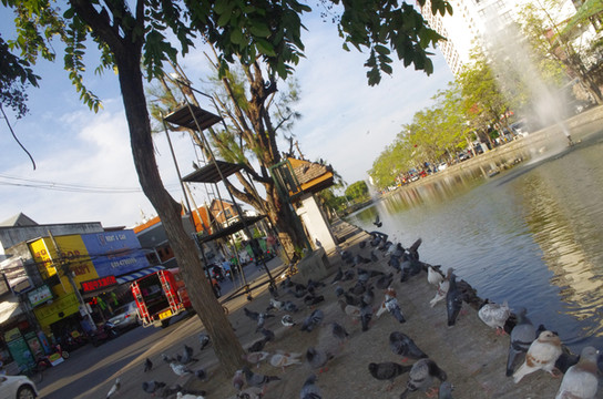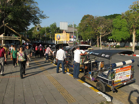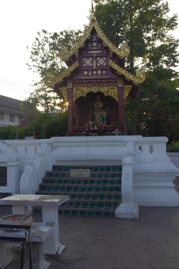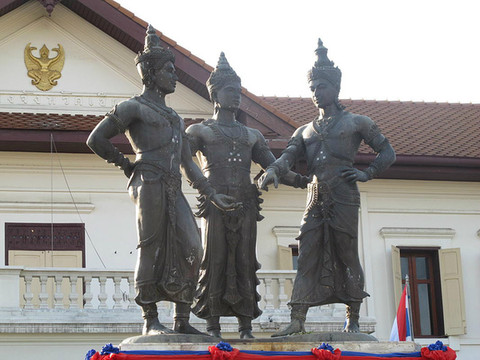 路过三王铜像纪念广场:是协力建造清迈古城的三王,即清迈的曼格莱王,素可泰的蓝坎亨王,帕尧的南蒙王。三王互结友好条约,形同兄弟,在建造清迈城时,清迈的曼格莱王得到蓝坎亨王和南蒙王非常大的帮助,集结了9万人参与城市的兴建。三王在泰北人民心中有崇高的地位,因此每天来此朝拜的人络绎不绝。