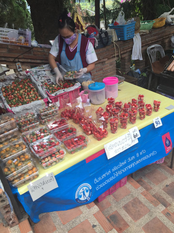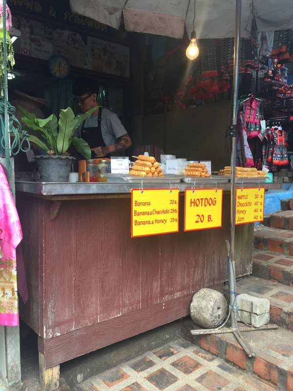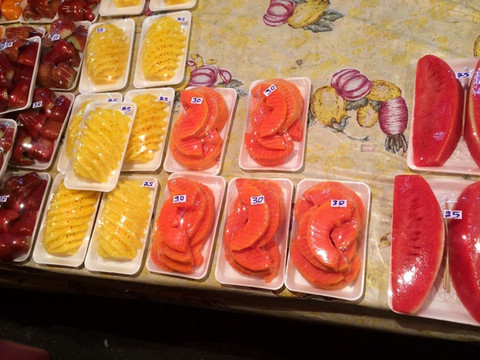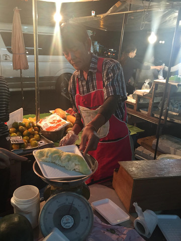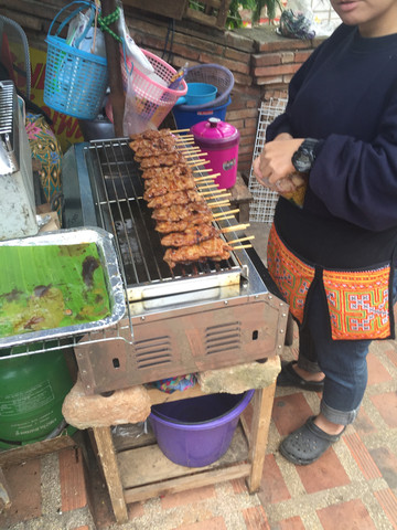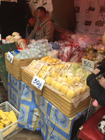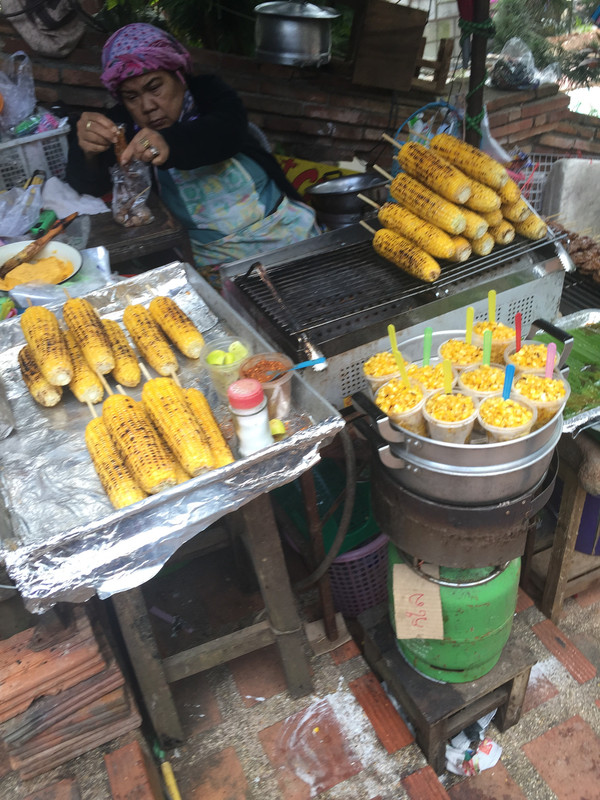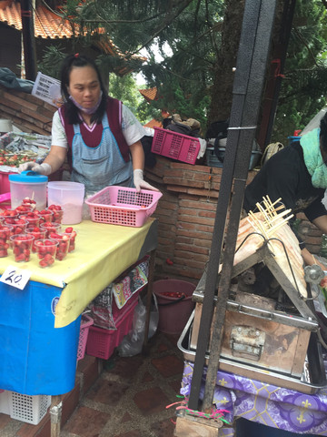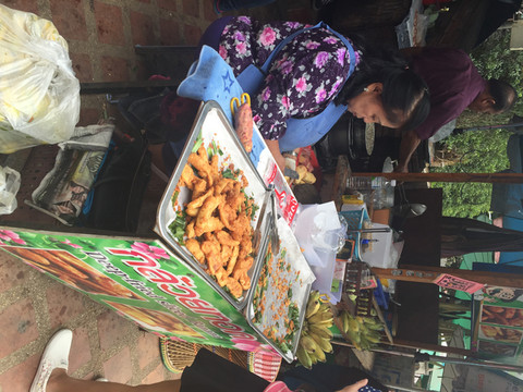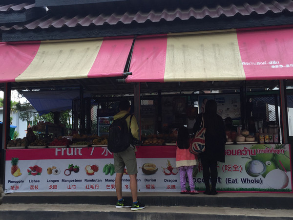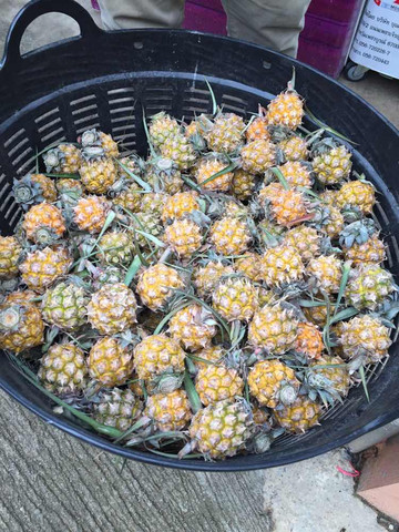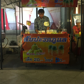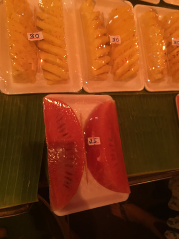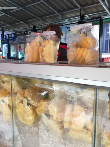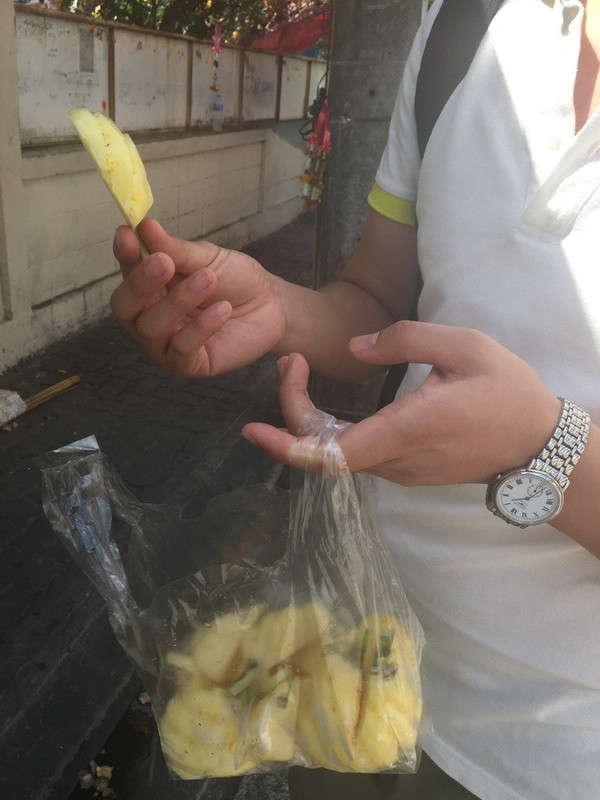 导游说清莱的小菠萝是最甜的,当然不能错过啦,但是不要买整个的,要买削好皮的,否则就咱这手法,估计削皮完也不剩啥啦。。。30B