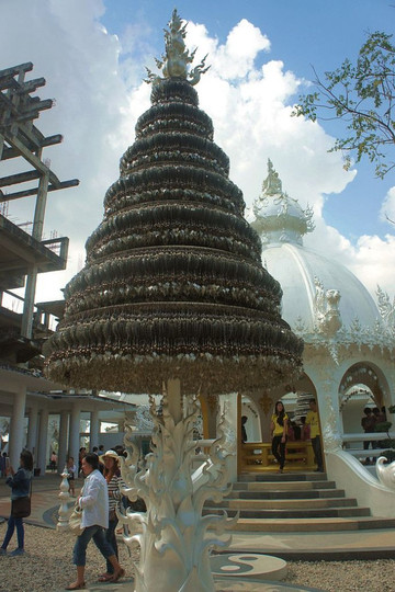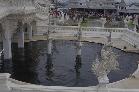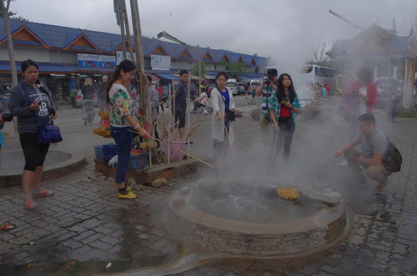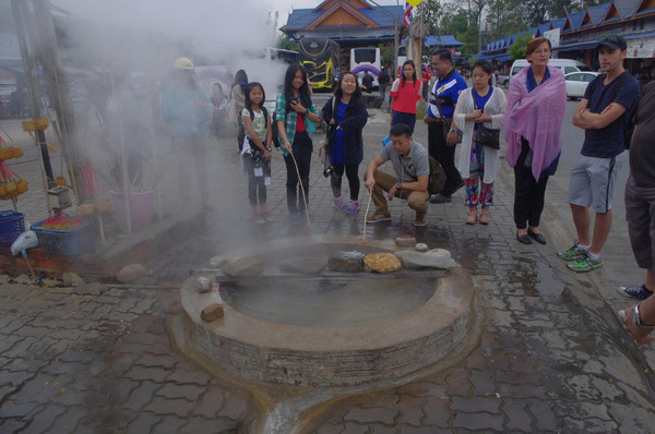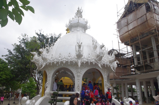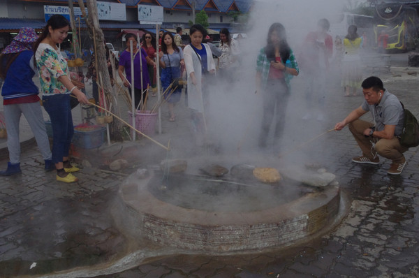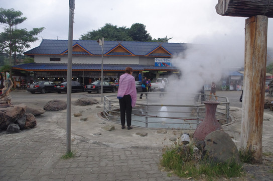 7点来接,一车12人,9:30左右到达温泉休息区,有泡脚的地方,建议大家一定要去购买温泉煮蛋,有鸡蛋和鹌鹑蛋两种,20B,11点到达白庙(灵光寺)就在对面吃饭(四人一桌,两荤两素,可以吃饱),然后参观,大概下午2点出发黑庙,3点半左右返回清迈。。