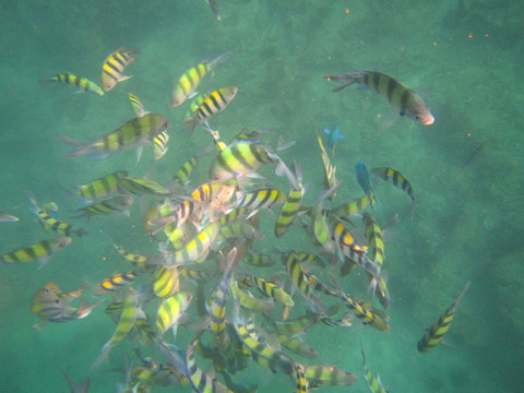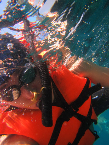 其实我有深海恐惧症,平时看见深一点的水啊什么的就会害怕,总觉得里面有大水怪,呵呵呵。这次能下水,已经很大挑战了~~~
