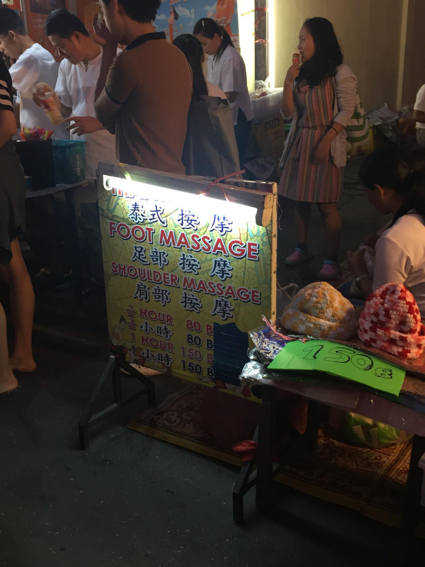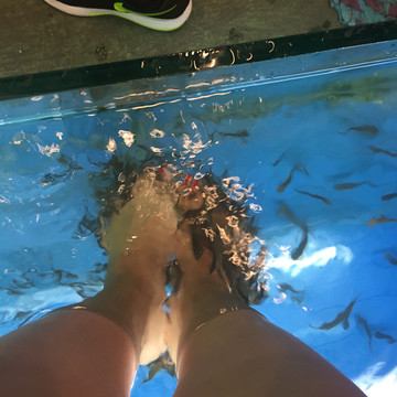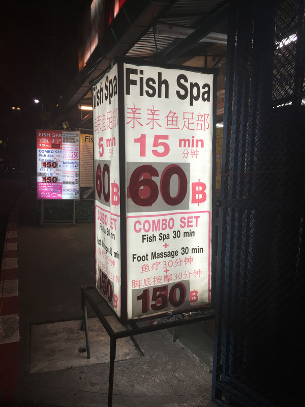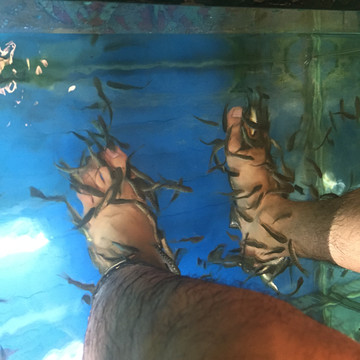 和李先生一觉睡到了晚上11点,又去吃了猪脚饭,回来的路上在街边做了鱼疗,是个老外开的,外面可以泡脚,店里面可以做马杀鸡足疗之类的,我俩的脚部都属于比较敏感的类型,小鱼一呼上来,痒的我俩哈哈大笑,弄得在屋子里按摩的一帮泰国人也跟着哈哈大笑。。。。