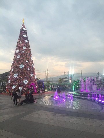 这个许愿池上面有12生肖,站在对应自己的生肖下面往里面投硬币就好啦,最好投在中间的花心里面,我当时一下子就投在最中间啦,马山许愿,导游说很灵的呢~~~