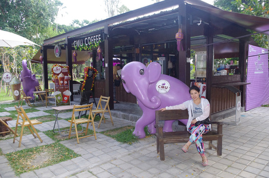 售票处那有家咖啡厅,门口的小象很可爱。··