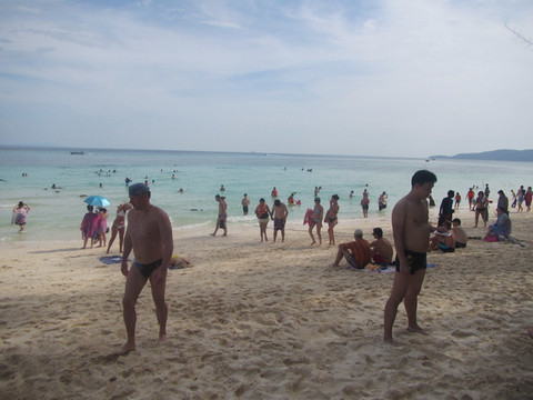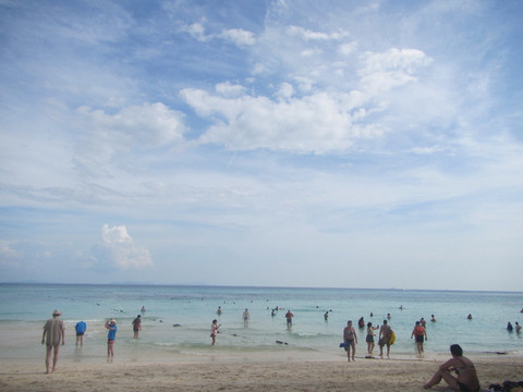 我找了个阴凉地方望天,李先生跑去游泳了,还告诉我海水里可凉快了。。。。!~~~