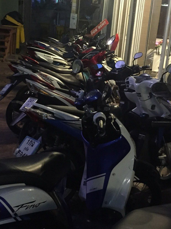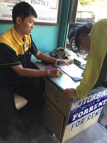 第二天在酒店前台租了摩托车,不需要中国的驾驶证,护照复印件就可以,一般是200泰铢到250泰铢一天。