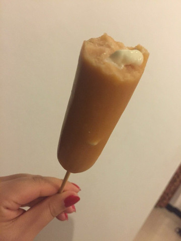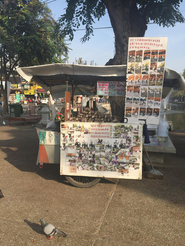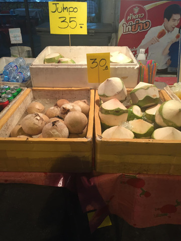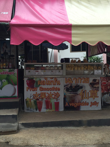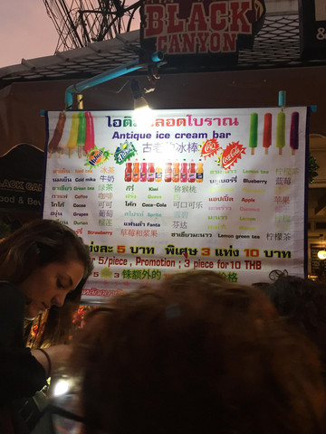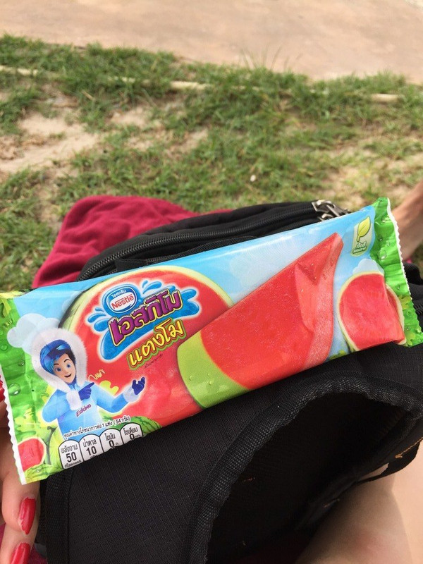 出了寺庙门口有个卖冰淇淋的小泰哥,我们花了30B买了份椰子冰淇淋,奶香味超级浓。
