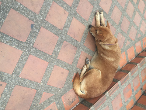 这个小胖子老淡定了,在音乐杠杠的路面上睡着了,哈哈哈,淡定狗太可爱了~~!