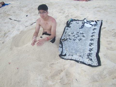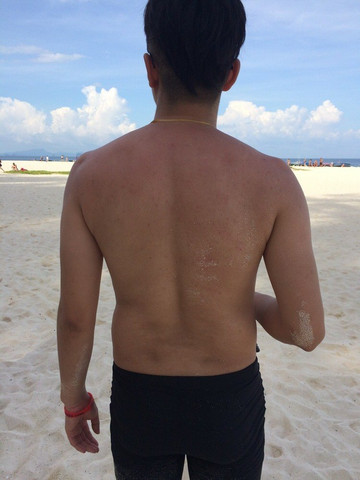 李先生不听话,下海去游泳,没有涂抹防晒霜,后背晒的红红的,晚上回宾馆赶紧抹了厚厚的芦荟胶,还好没有晒伤,芦荟胶是在泰国买的,上面有提到过,好用又划算。