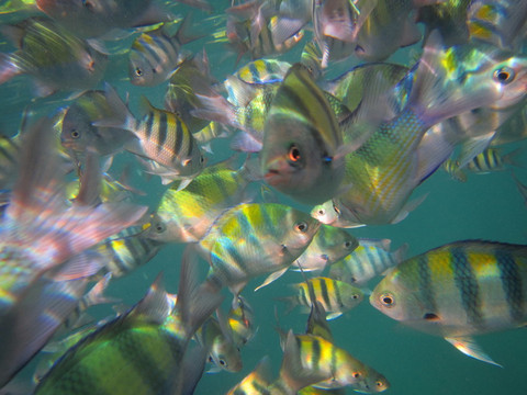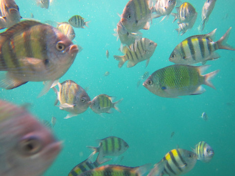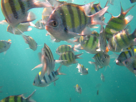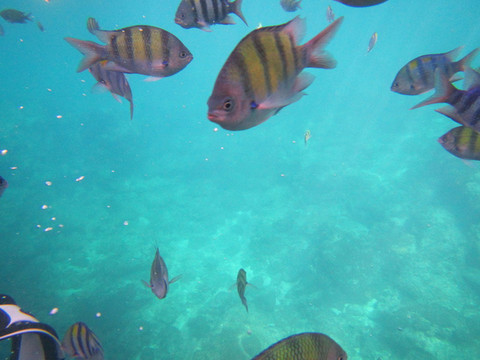 开始准备浮潜啦~~下面是李先生用水下相机拍摄的,。。不要问我在哪里,全程都被船长小黑牵着,,实在害怕啊~~