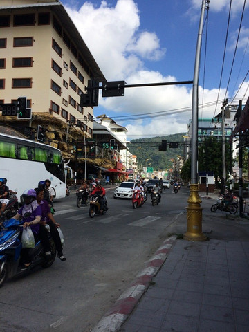 当地是靠左行驶的,在泰国的这些天我和李先生的交通工具都是租摩托车,经常一不留神就开到右边去了,当地人都会滴滴示意你方向错了~所以不管你租车还是过马路都要注意,安全最重要~~~
