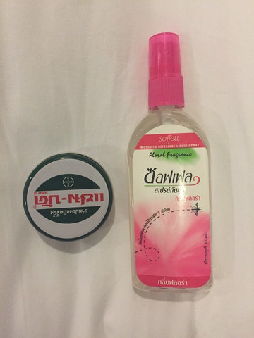 这个是防蚊虫叮咬的喷雾+蚊虫叮咬药膏,还是很好使的。价格不贵,随处可以买到。
