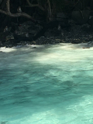 浮潜了一会,可以上岛休息一个半小时,躺在沙滩上,看着蓝天白云,真仙儿啊。~