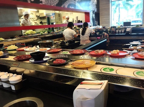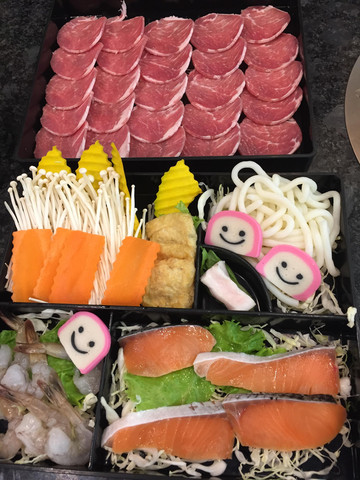 Shi日式自助小火锅,位于江西冷,就在大帆船正对面。用餐时间限定为75分钟,375泰铢。可以支付宝支付,扫码很方便,位置随便坐,不要浪费哦~~!