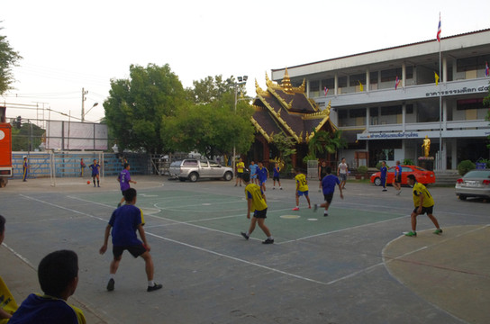寺庙的隔壁就是所学校,教练正带着学生们踢足球,我们坐着看了一会,踢的真心都不错呢~!
