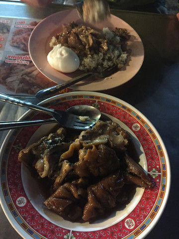 路边一家小饭馆,看着干净还有本地人在吃饭,我点了猪脚饭,李先生点的不知道是啥!!~~