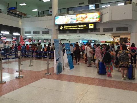 OK,到了普吉下了飞机以后取行李然后到达大厅,在移民局的柜台前排队通关,把护照和入境卡一起交给移民局的官员,核对资料以后会收去入境联,把出境联和护照一起还给你,注意保管好,出关还要用的。