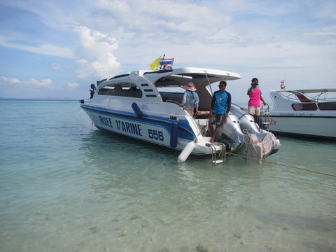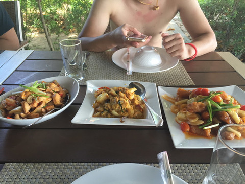正常不用吃早饭,到岸边是有小点心可以吃的,因为SB们的迟到,导致时间太紧,我和李先生只吃了块饼干就上船出海了,中午饿的不行。nnd现在想想还来气呢~~