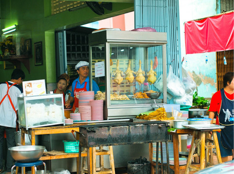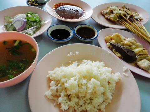 隔壁就是“发荣”海南鸡饭,是另一家很有名的店。不过比起“发清”人要少很多。旁边还有几家华人开的饮食摊档。我和李先生看到了海南鸡饭就进去吃了,吃完出来才发现是“发荣”果然第二天又去了一次“发清”。味道都不错,我比较爱喝配套里面的鸡汤,很鲜。~