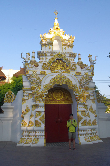 清迈真的是一座古城,随便走走停停,不经意的一条街就会发现一座非常非常美的寺庙,还是建议大家租摩托车啦,200B一天,真的很方便,想去哪就去哪,汽油又超级便宜,我和李先生在加油站加了50B,真的是骑了好久。不会骑摩托车那就租自行车吧,省钱不说,自由行么,就是要自由自在,。。。!
