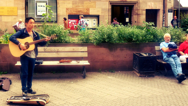 上一次欧洲之行萌发了我这个念头,我想在欧洲实现我多年来抱着吉他流浪的夙愿,这个想法和我朋友马丁不谋而合,我们决定组成一个组合,表演形式就是他拉小提琴,我吉他伴奏加唱歌,我们虽都不是什么达人,但是在一起表演的效果就会增强很多。
