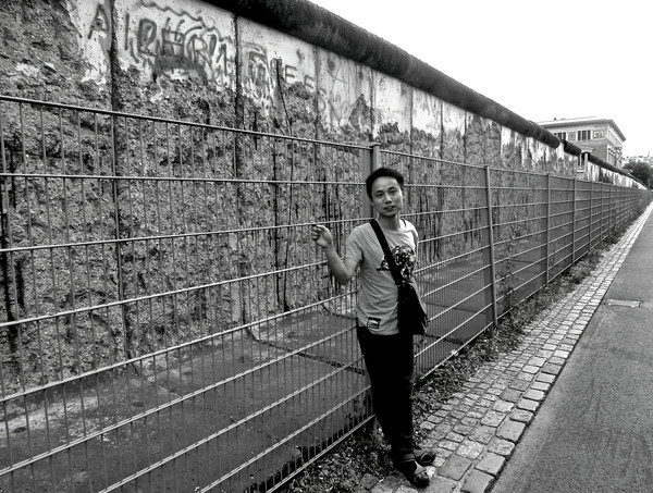 墙的对面有个柏林熊的雕塑。