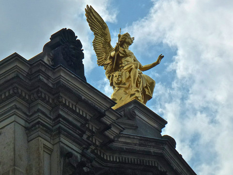 金色骑士雕像。身后便是一条很宽,两边很多树的景观大道,直通阿尔伯特广场。