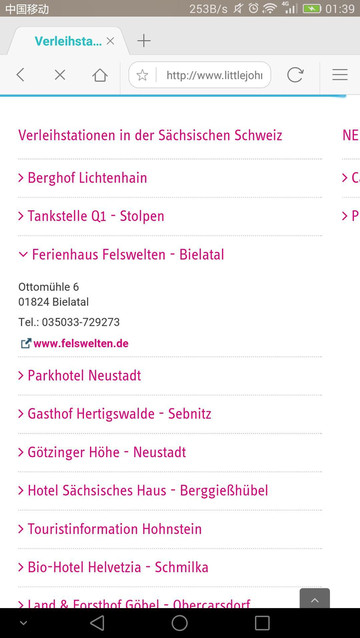 上图是德国的小约翰全国连锁的自行车出租公司,在国家森林里面的点位于Bielatal村庄,首先从德累斯顿坐火车到达然后这里有公交到达Bielatal。最后早点到,我们当时到达时间大概是10:30,上午已经没有车了,下午最早一班要两点多。于是我们决定顺着大路步行,路上看到有车就拦车搭便车。