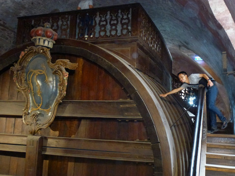 过了集市,旁边的一个小花坛里我们又表演了一会。硬币数了下,大概有50欧元吧。不多,不过好歹补贴点。之后去参观了附近的圣多马教堂和巴赫博物馆。