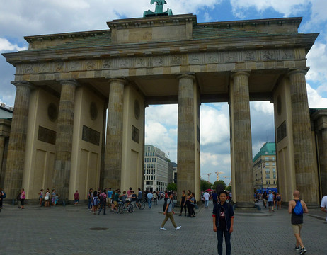 勃兰登堡门和巴黎广场,可以别慌走过这个门,正对着门往右边走一小段路便可以看到欧洲被害犹太人纪念碑。然后再返回穿过这个大门,便是巴黎广场,对直走到菩提树下大街。