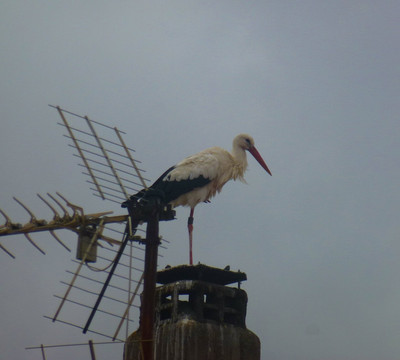 宾馆里看到对面楼顶有个仙鹤窝