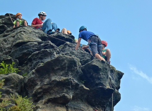 一群学生在攀岩