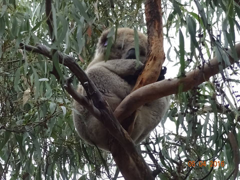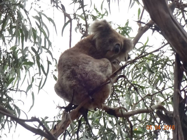 4/6續行大洋大道向東北走,路過一個湖,過橋之後到達一座小村莊。村外有很多油加利樹,樹上有野生的無尾熊。這些愛吃油加利樹葉的無尾熊和當地居民相處和諧,相安無事。居民說:有時,牠們會路溜到居民的庭院中閒逛。