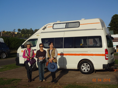 表弟夫妻二人由美國出發,我和好友由台北出發,4/2中午在澳洲墨爾本國際機場碰頭,再乘計程車去租車公司取車。午後兩點拿到露營車,清點車上物品,了解使用方法,以及開車注意事項,耽擱約一小時。