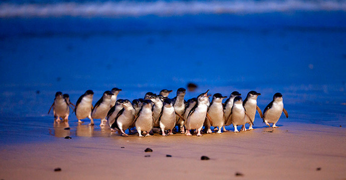 小企鵝為何團隊精神這麼好呢?解說人員告訴我們:小企鵝上岸後最怕老鷹,牠們集合在一起,讓天上盤旋的老鷹誤以為牠是一隻大動物,就會放棄飛下來捕捉。