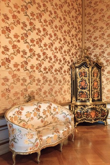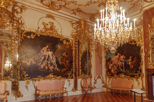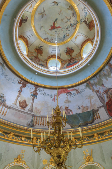 新宫的内部依然是改不了的洛可可风,金色的装饰随处可见,很开心地发现这里依然延续着无忧宫小清新的画风,花朵呀、果实呀、藤蔓呀,连瓷质烛台都不能幸免,这才是夏宫的感觉啊