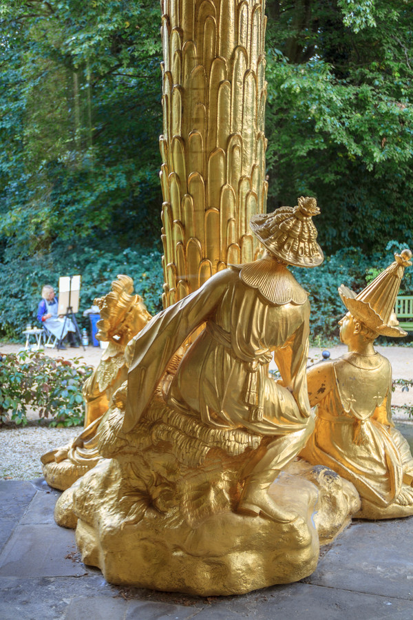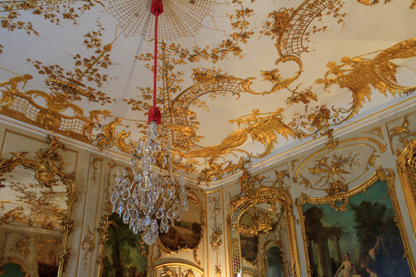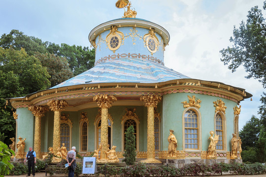 穿过小路,绿树成荫的背后是中国茶室(Chinesisches Haus), 洛可可风的外饰让这里的风格很是另类,装饰的人像都是混血儿的脸孔,这大概便是想象中的东方情调吧……