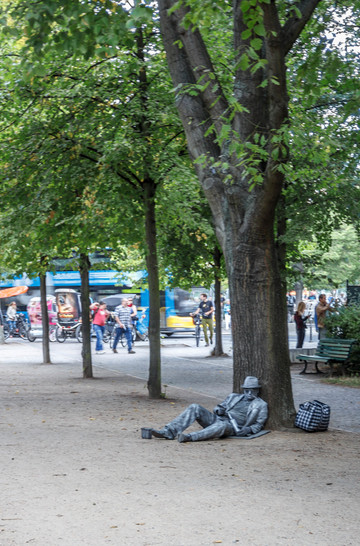要告别沉重的心情,往联邦大厦的路上就是巨大的Grosser Tiergarden,这里沿途很多卖艺人。柏林是世界上绿地比率最高的首都之一,打开地图到处都是绿色小方块,Tiergarden太大,去游玩建议租个自行车。