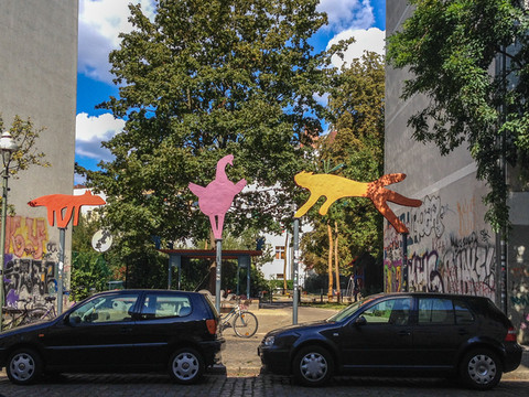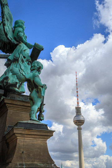 楼顶也是眺望柏林的好地方,户外雕塑与各种地标互动